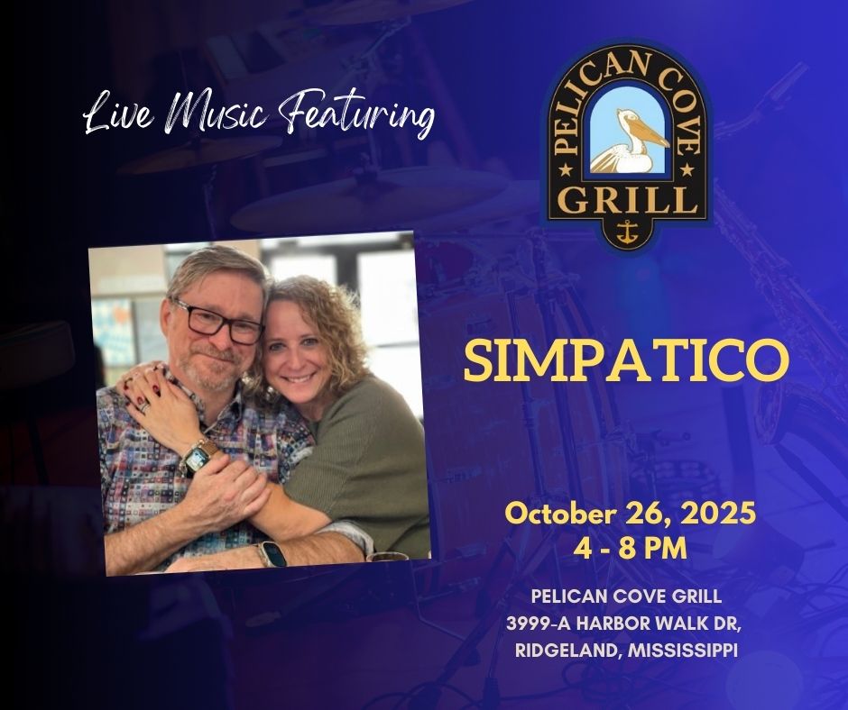 Are you ready for a super Sunday at Pelican Cove Grill? Come Early, bring your Friends, enjoy some Great Food, have your favorite drink then sit back and relax to some really great music as you enjoy Mississippi’s Greatest “On the Water“ Dining and Entertainment Experience! Headliner: Simpatico Genre: Variety of Great Music