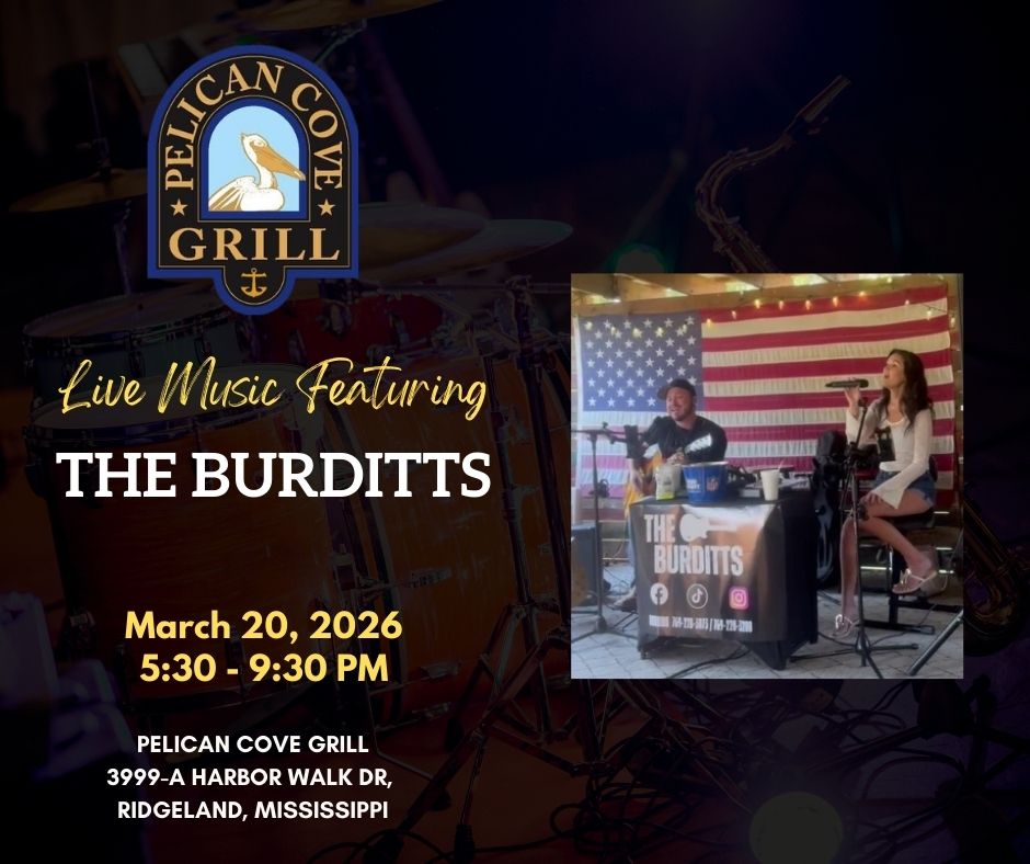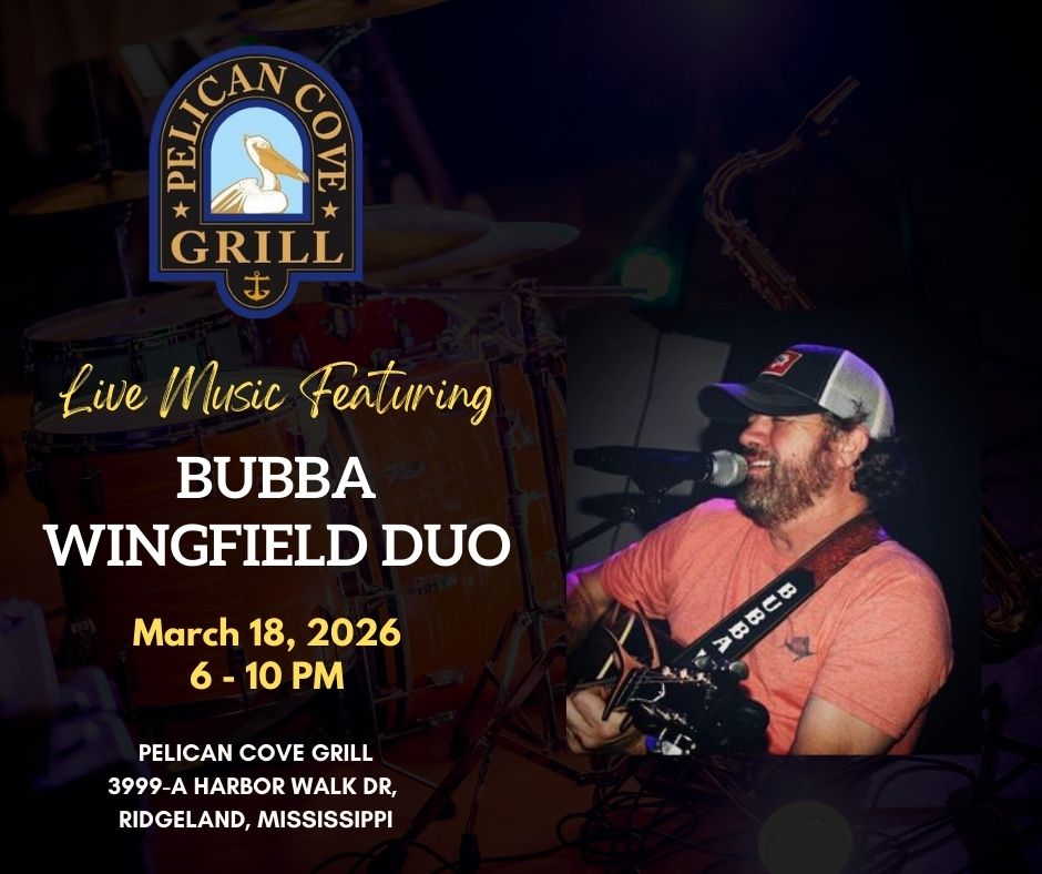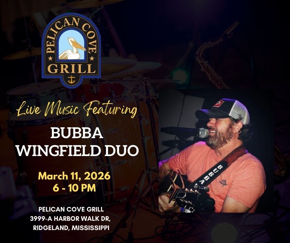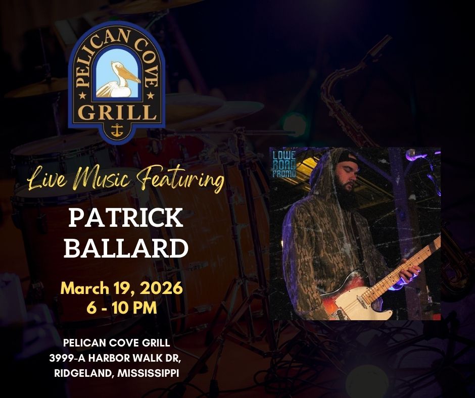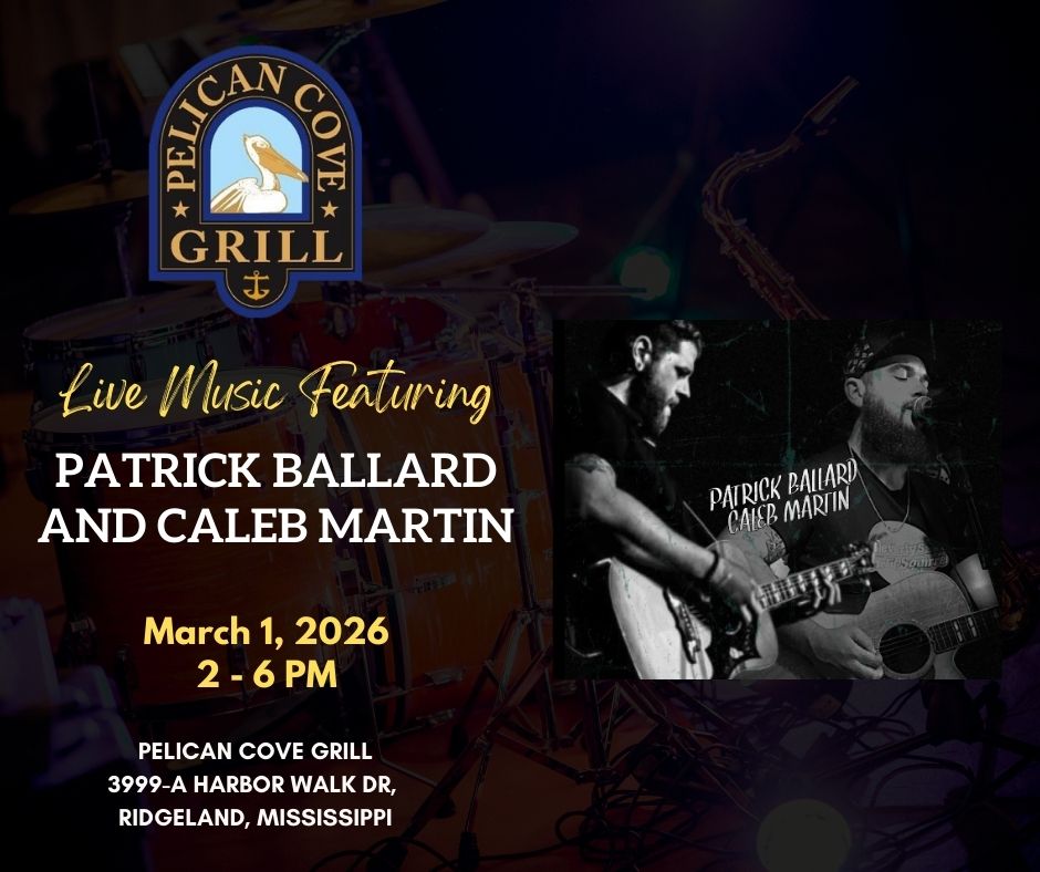 Are you ready for a super Sunday at Pelican Cove Grill? Come Early, bring your Friends, enjoy some Great Food, have your favorite drink then sit back and relax to some really great music as you enjoy Mississippi’s Greatest “On the Water“ Dining and Entertainment Experience! Headliner: Patrick Ballard and Caleb Martin Genre: Variety of Great Music
